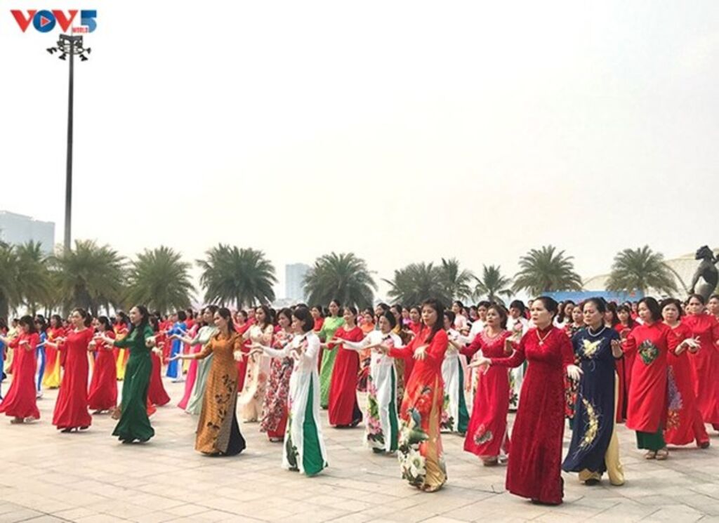 L’Association des femmes de Dà Nang, pour sa part, a organisé ce dimanche soir 5 mars un spectacle intitulé "L’ao dài - l’identité vietnamienne". Le programme a débuté par un défilé avec la participation de Miss vietnamienne 2022 Huynh Thi Thanh Thuy. Le point d’orgue était une danse collective de 300 femmes vêtues de leur ao dài.
