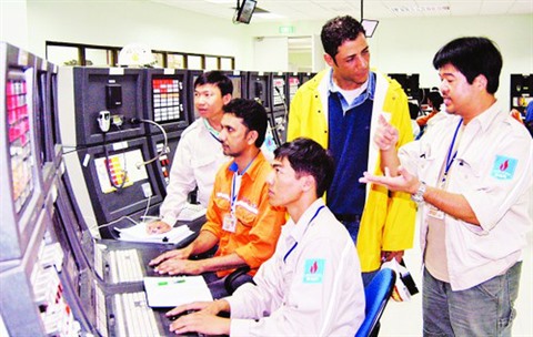 | Des travailleurs étrangers dans la raffinnerie de Dung Quât dans le Centre. |