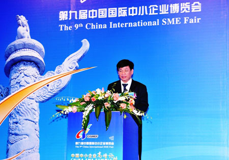 | Le vice-ministre vietnamien de l'Industrie et du Commerce, Nguyên Thành Biên, prend la parole à la foire internationale des petites et moyennes entreprises CISMEF 2012, le 22 septembre à Canton du Guangdong (Chine). |