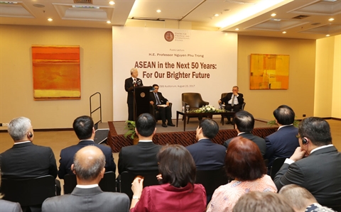 Afin de matérialiser la Vision de l’ASEAN 2025, le leader vietnamien a souligné que l’ASEAN devrait mener à bien l’édification de la Communauté de l’ASEAN vraiement unie, puissante et prospère ; maintenir et consolider la paix et la stabilité de la région ; et intensifier les liens avec ses partenaires extérieurs, et en même temps, renforcer et promouvoir l’efficacité de le rôle central de l’ASEAN dans les architectures régionales en formation.