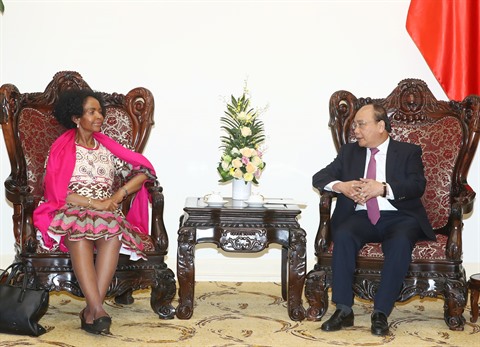 | Le Premier ministre Nguyên Xuân Phuc et la ministre sud-africaine des Relations internationales et de la Coopération, Maite Nkoana Mashabane, le 6 septembre à Hanoï. |