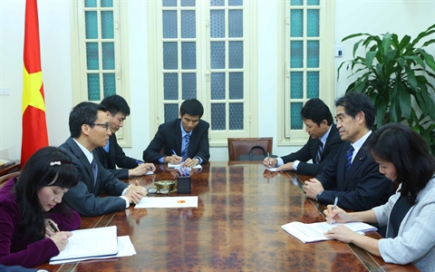 | Le vice-Premier ministre Vu Duc Dam (2e à gauche) reçoit le 15 décembre à Hanoi Ichiro Aisawa, président du Comité des politiques nationales fondamentales de la Chambre des représentants du Japon. |