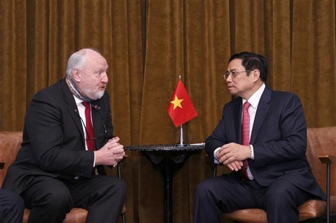 | Le Premier ministre Pham Minh Chinh (droite) et le président du Pacific Land Group, Patrick McKillen. |