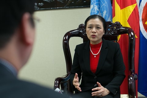 | L'ambassadeur de la mission permanente du Vietnam auprès de l'ONU, Nguyên Phuong Nga, accorde, le 14 janvier à New York, une interview à un reporter de l'Agence vietnamienne d'information (VNA). |