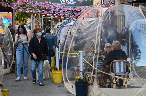 | Un restaurant utilise des tentes en plastique séparant les tables à Manhattan, New York, le 15 octobre. |