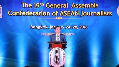 Thuân Huu a affirmé la volonté de l’AJV de travailler en étroite collaboration avec l’Association des journalistes thaïlandais qui assumera la présidence de la CJA pour la période 2018 - 2020 afin de faire de cette dernière une organisation puissante de dimension régionale, ainsi que d’édifier une Communauté de l’ASEAN paisible, solidaire, stable, prospère et unie.