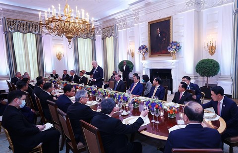 | Les dirigeants des pays membres de l'ASEAN, dont le Premier ministre vietnamien Pham Minh Chinh, ont assisté le 12 mai à un banquet présidé par le maître de la Maison Blanche, Joe Biden. |