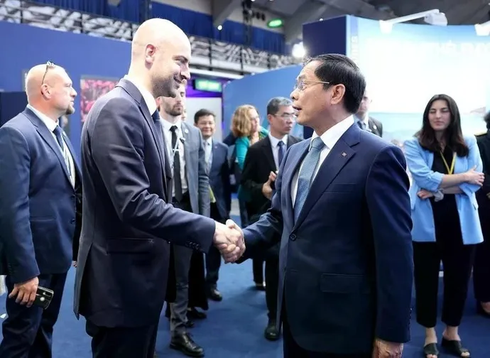 | Le vice-Premier ministre vietnamien et ministre des Affaires étrangères du Vietnam, Bùi Thanh Son (1er rang, centre) lors de l’événement, à Nice, le 11 juin. |