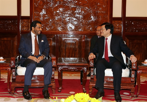 | Truong Tân Sang (droite) et Abdullah Sultan Al-Hamar, le 15 décembre à Hanoi. |