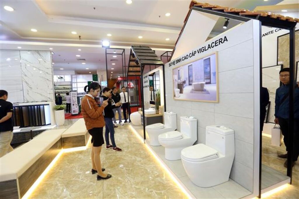 | Des produits céramiques de Viglacera exposés lors du Salon Vietbuild à Hanoï. |