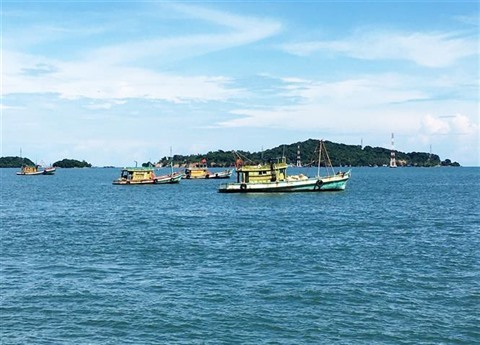 | Les bateaux de pêches dans les eaux de la ville de Hà Tiên, province méridionale de Kiên Giang. |