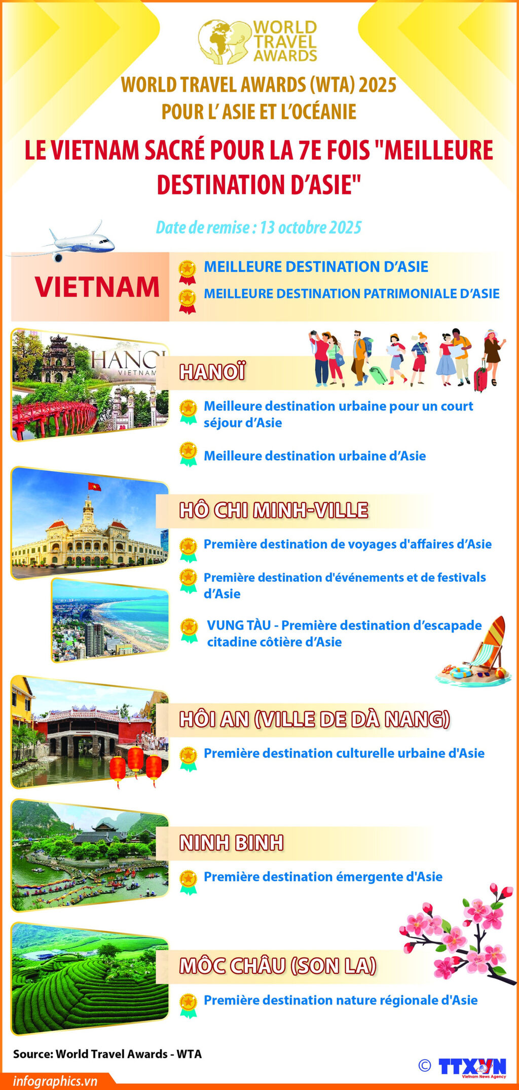 Dà Nang suit avec une croissance de 42% de l'intérêt touristique, notamment grâce à ses plages, ses activités de plein air douces et son accès au parc d'attractions Bà Nà Hills. Nha Trang se classe troisième, restant une destination de choix pour son long littoral, ses complexes hôteliers familiaux et ses expériences insulaires.