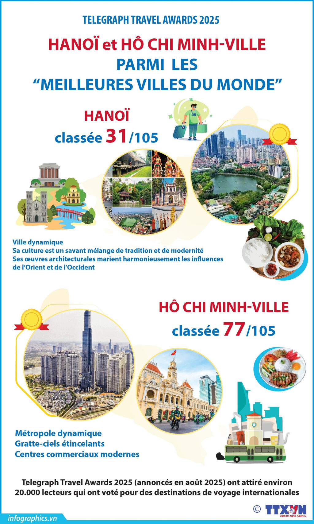 En quatrième position, Hô Chi Minh-Ville séduit par sa scène culinaire dynamique, ses complexes de loisirs et ses excursions d'une journée dans le delta du Mékong.