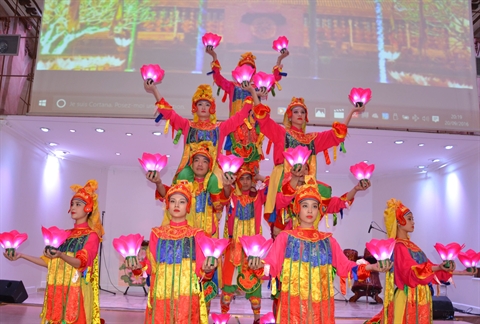 | Un numéro de danse vietnamien lors du programme de promotion du tourisme vietnamien en France, tenu le 20 septembre à Paris. |