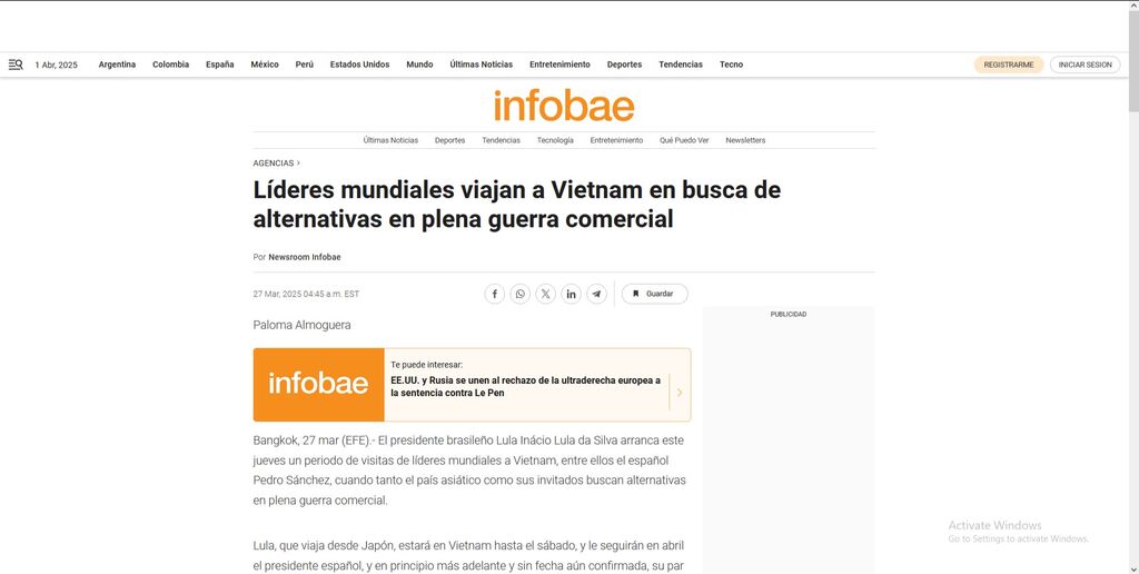 | Capture d'écran de l'article dans le journal argentin Infobae. |