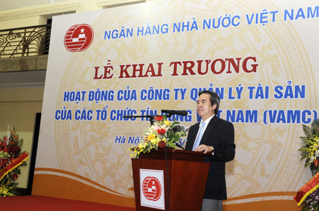 | Le gouverneur de la Banque d'État, Nguyên Van Binh, lors de l'inauguration de la VAMC, la semaine dernière à Hanoi. Photo : Trân Viêt/VNA/CVN |