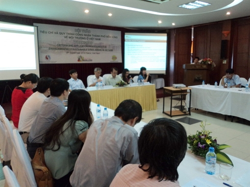 | Séminaire sur le processus et les critères de reconnaissance du titre de "Ville durable en matière d'environnement" au Vietnam. |