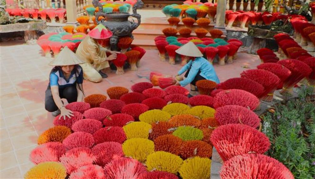 | Dans un village de fabrication d'encens en banlieue de Hanoï. |