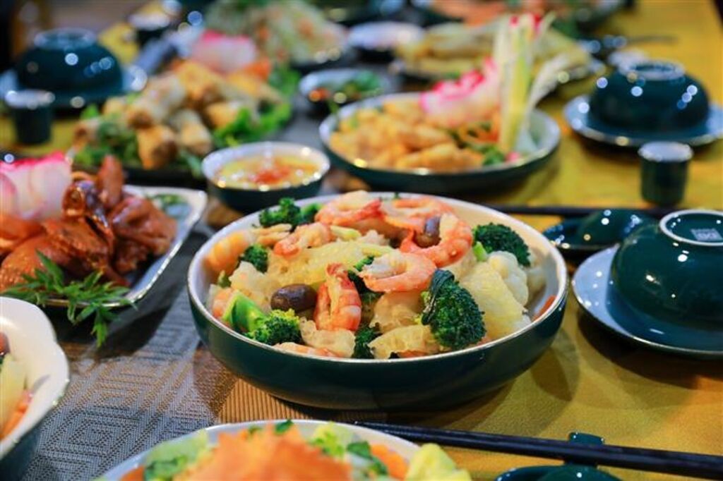 | Des plats préparés par le village de céramique de Bat Tràng pour être présentés aux touristes. |