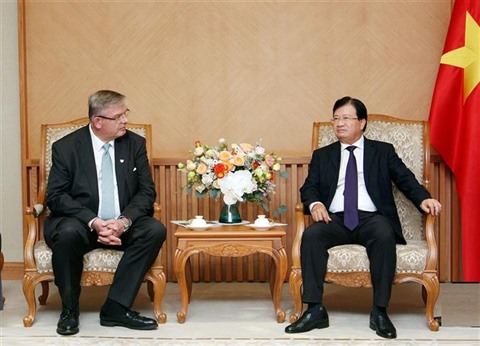 | Raymond Carlsen, directeur général de la société norvégienne Scatec Solar et le vice-Premier ministre Trinh Dinh Dung (droite). |