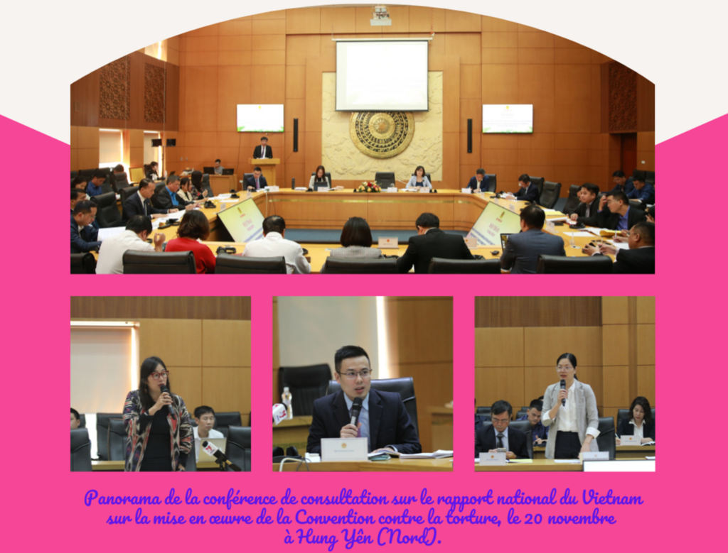 Le Comité d’élaboration du deuxième rapport national du Vietnam sur la mise en œuvre de la Convention contre la torture (Rapport CAT 2) a organisé, le 20 novembre à Hung Yên (Centre), une conférence de consultation pour recueillir les avis, commentaires et suggestions des organismes gouvernementaux, des autorités locales, des organisations politiques et sociales, des organisations professionnelles, des organisations non gouvernementales et du public sur le rapport CAT 2.