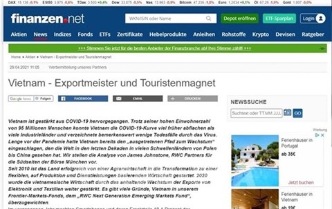 Le journal en ligne allemand finanzen.net a cité l'analyse de James Johnstone, un expert du groupe RWC Partners en notant que depuis 2010, le Vietnam avait commencé avec succès la transition d'une économie agricole à une économie flexible basée sur la production et le tertiaire. En 2020, l'économie vietnamienne continuera d'être renforcée grâce à la croissance des exportations des produits électroniques et de textile.