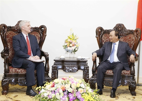 | Le PM Nguyên Xuân Phuc a reçu le 25 mai à Hanoi le directeur national de la BAD au Vietnam, Eric Sidgwick. |
