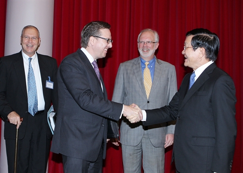 | Le président de la République, Truong Tân Sang (droite), reçoit le président du Conseil des affaires États-Unis – ASEAN, Alexander Feldman, le 13 mars à Hanoi. |