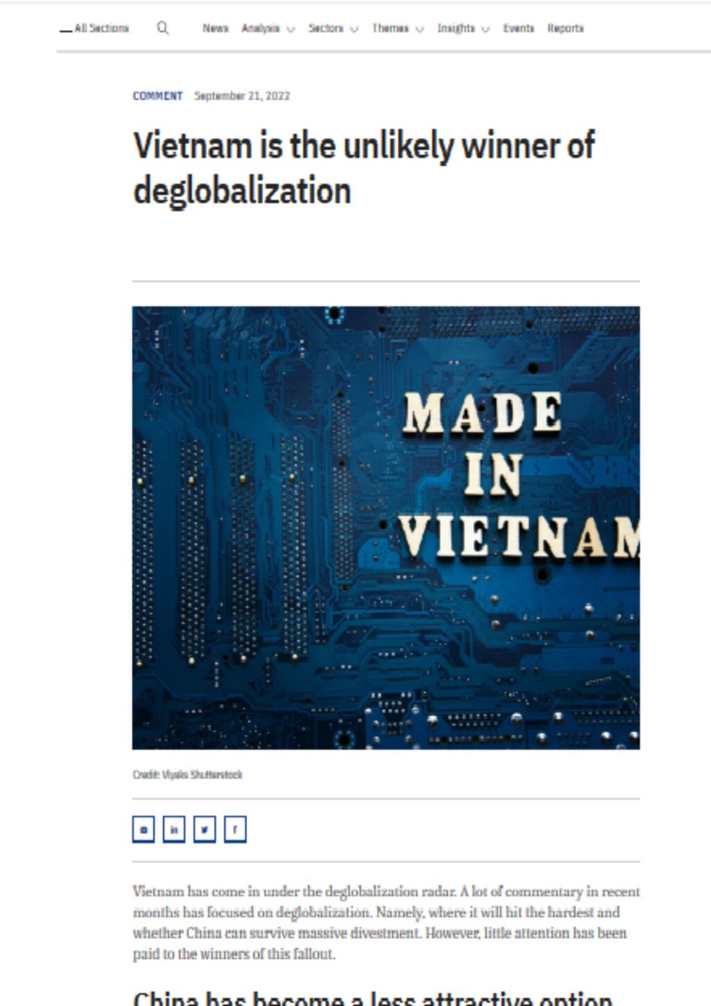 L’article cite également un certain nombre de grandes entreprises qui ont investi au Vietnam.