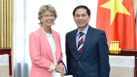 | Le vice-ministre permanent vietnamien des Affaires étrangères, Bùi Thanh Son et la nouvelle ambassadrice d’Espagne au Vietnam, Maria Jesus Figa Lopez-Palop. |