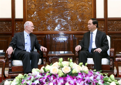 | Le président Trân Dai Quang (droite) et le professeur John Savage de l’Université Brown, le 27 octobre à Hanoï |