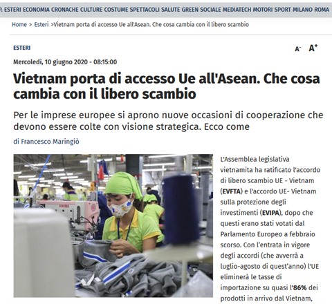 Selon la source de Hanoï, la mise en œuvre de l'EVFTA devrait augmenter le PIB du pays de 4,6% et les exportations vers l'UE de près de 42,7% d'ici 2025. En revanche, les pays de l'UE auront un accès à une économie en croissance rapide avec plus de 100 millions de consommateurs, un pays jeune et dynamique avec une classe moyenne en croissance et un système éducatif de qualité.
