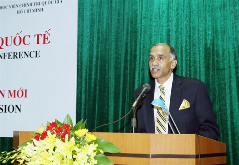 | L'ambassadeur indien au Vietnam, Parvathaneni Harish, lors d'un colloque sur les relations vietnamo-indiennes en 2016. |