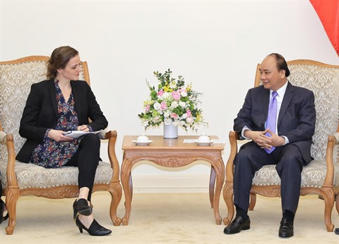 | La ministre danoise de la Santé, Ellen Trane Norby, reçue le 10 avril à Hanoï par le Premier ministre Nguyên Xuân Phuc. |
