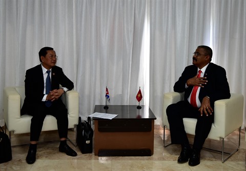 | Le vice-président de la Cour populaire suprême du Vietnam, Nguyên Van Du (gauche), et le président du Tribunal populaire suprême de Cuba, Rubén Remigio Ferro. |