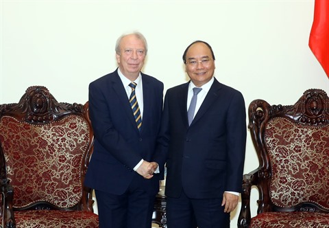 | Le Premier ministre vietnamien Nguyên Xuân Phuc (droite) et l’ambassadeur de Bulgarie au Vietnam, Evgueni Stefanov Stoytchev, le 4 octobre à Hanoï. |