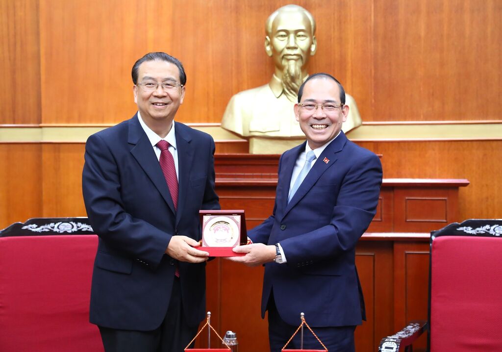 L'hôte a informé son invité que du 27 novembre au 1er décembre, le Comité central du FPV se coordonnerait avec la Conférence consultative politique du peuple chinois pour organiser le deuxième échange d'amitié dans la province septentrionale de Quang Ninh. Il a espéré que cet effort servirait de preuve éclatante et d'activité pratique pour concrétiser les perceptions communes auxquelles sont parvenus les plus hauts dirigeants des partis et des États, en particulier dans les échanges entre les peuples.