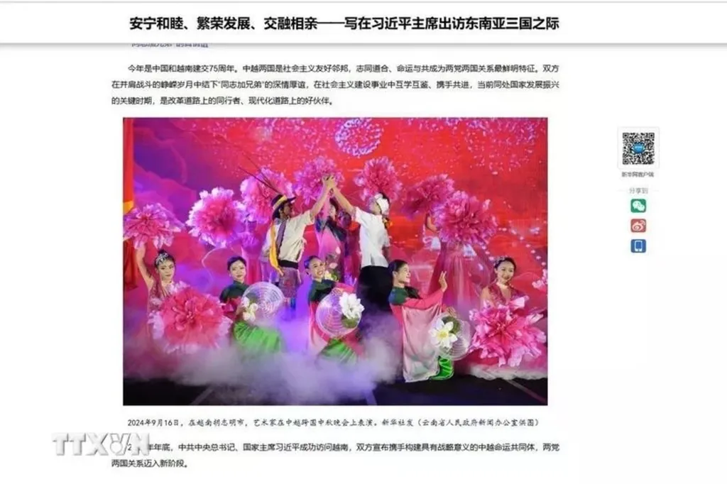 | Selon l’article de l’Agence de presse chinoise Xinhua, 2025 marque le 75e anniversaire des relations sino-vietnamiennes et est l’Année 2025 des échanges humanistes Vietnam - Chine. |
