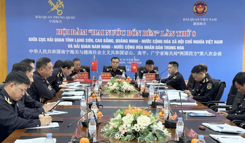 | Vue du 8e dialogue entre les Départements des douanes de trois provinces du Nord-Est - Lang Son, Cao Bang, Quang Ninh - et leur homologue chinois de Nanning. |