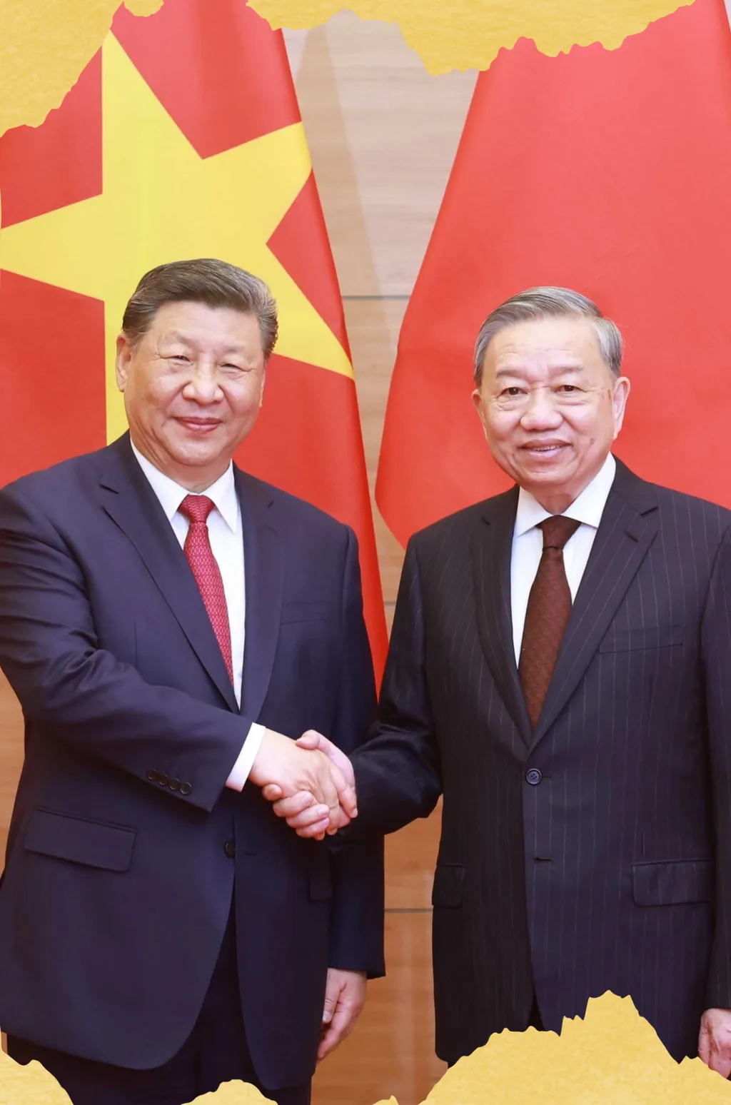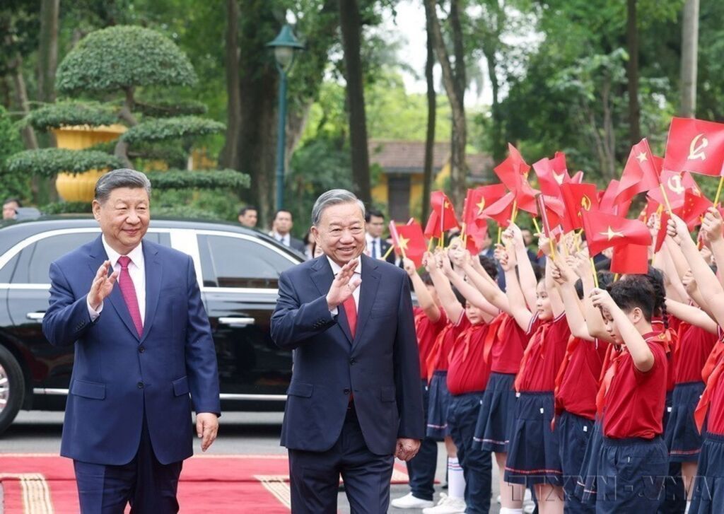 | Le secrétaire général Tô Lâm (droite) accueille le secrétaire général et président chinois Xi Jinping, en visite officielle au Vietnam (avril 2025). |