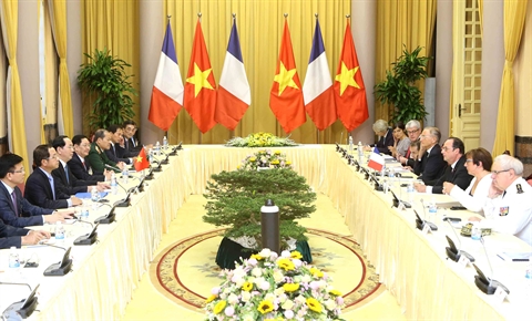 Lors de leur entretien, les deux présidents ont constaté que, depuis l’établissement du partenariat stratégique en 2013, les relations vietnamo-françaises avaient connu un développement heureux en tous domaines, de la politique à la culture en passant par la sécurité, l’économie, l’éducation, les sciences et les technologies. Ils ont insisté sur la nécessité d’une vision d’une coopération sur le long terme dans un intérêt commun, et décidé d’approfondir les relations politiques en multipliant les discussions à tous échelons.