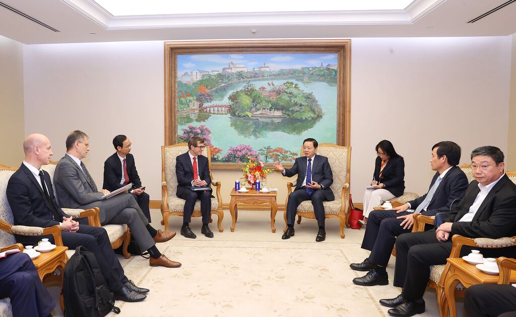 | Le vice-Premier ministre Trân Hông Hà (droite) reçoit le délégué interministériel aux approvisionnements en minerais et métaux stratégiques, Benjamin Gallezot. |