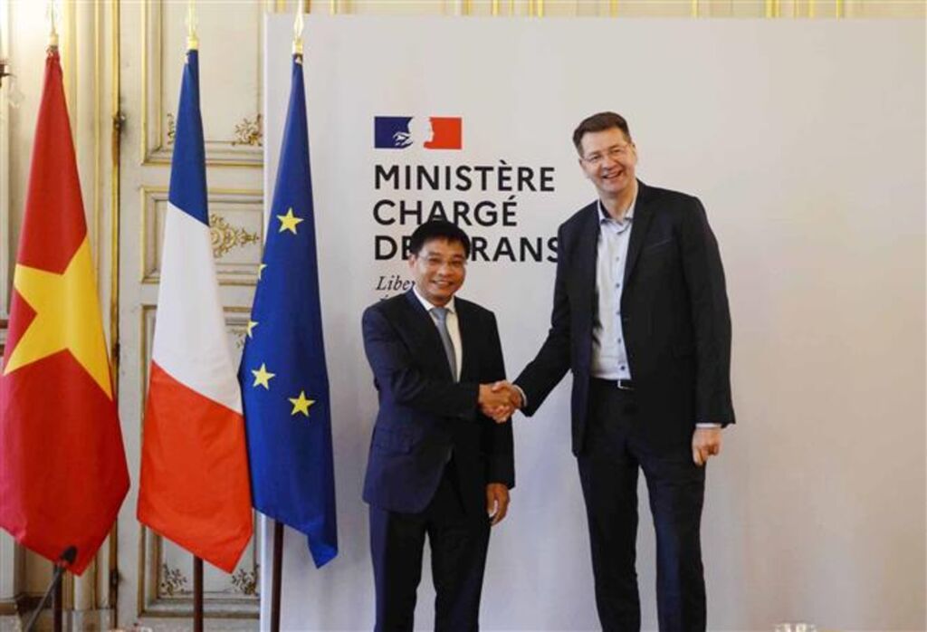 | Le ministre vietnamien des Transports, Nguyên Van Thang (gauche), et le ministre délégué auprès du ministre de la Transition écologique et de la Cohésion des territoires, chargé des Transports, Patrice Vergriete, à Paris. |