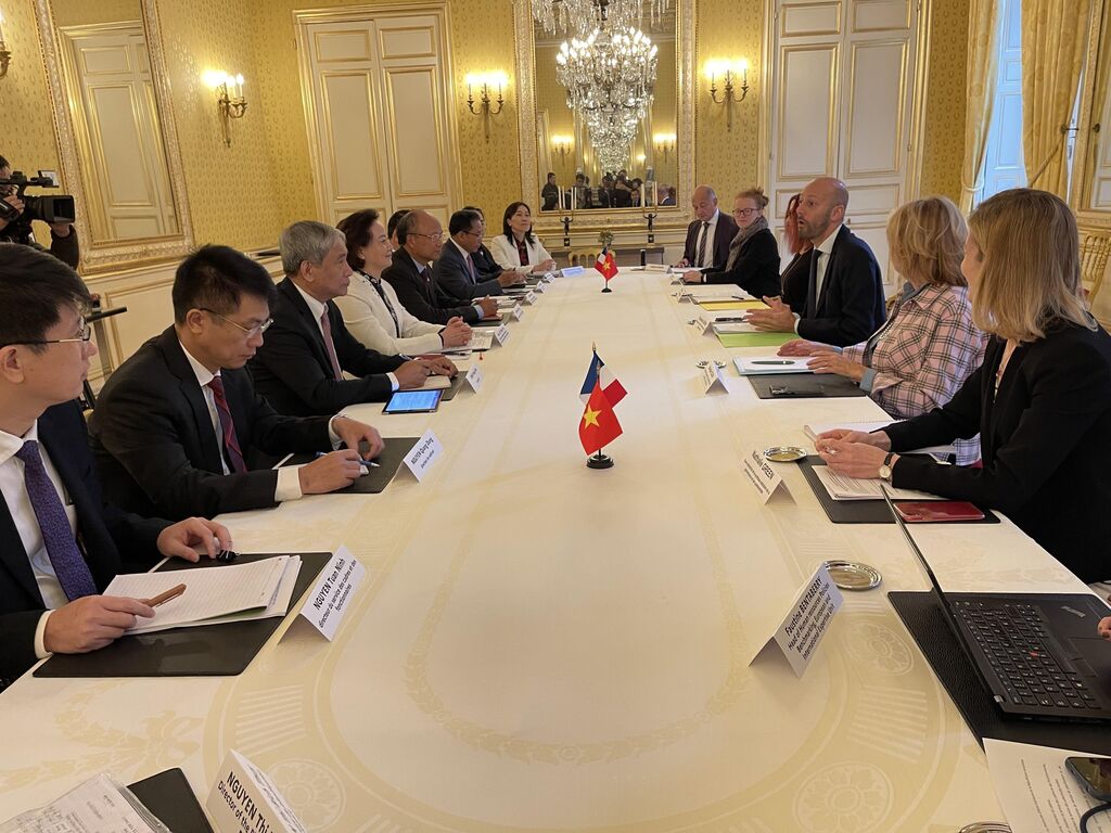 | Entretien entre le ministre français de la Transformation et de la Fonction publiques, Stanislas Guerini, et la ministre vietnamienne de l'Intérieur, Pham Thi Thanh Trà. |