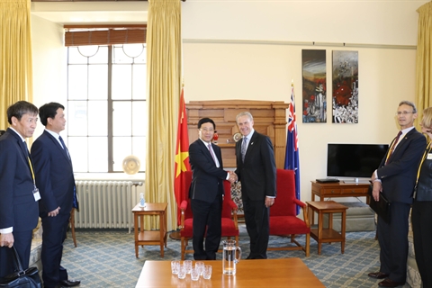 | Le président de la Chambre des représentants de la Nouvelle-Zélande, David Carter et le vice-Premier ministre et ministre des Affaires étrangères, Pham Binh Minh (gauche). |