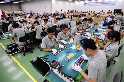 | Dans une usine de fabrication de téléphones Samsung au Vietnam. |