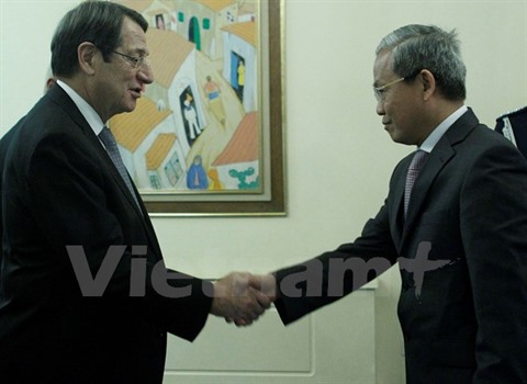 | L’ambassadeur du Vietnam, Cao Chinh Thiên (droite) et le président de la République de Chypre, Nicos Anastasiades, le 29 novembre à Nicosie, R. de Chypre. |