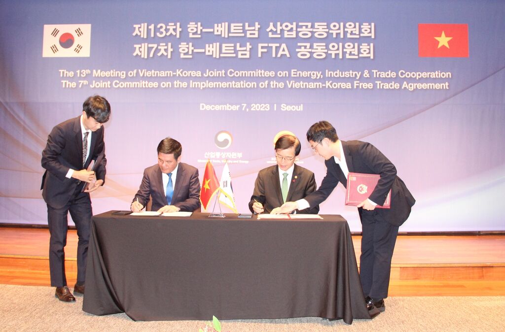 Lors de la 7e réunion du Comité mixte sur la mise en œuvre de l’Accord de libre-échange entre le Vietnam et la République de Corée, les deux ministres ont déclaré apprécier la mise en œuvre du cet accord ces huit dernières années, portant le commerce bilatéral à 87 milliards d'USD en 2022, contre 36,5 milliards d'USD en 2015. Les investissements sud-coréens au Vietnam ont été presque doublés, passant de 43,7 milliards d'USD en 2015 à plus de 84 milliards d'USD en 2023 (données mises à jour jusqu’en novembre 2023).