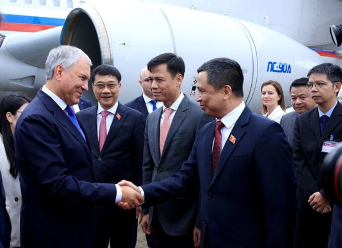 >> Le président de la Douma d’État de Russie arrive à Hanoï
