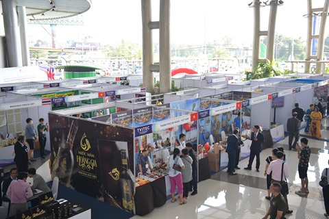 | Des stands à la Conférence internationale élargie sur la promotion du commerce entre le Vietnam et la Thaïlande à Udon Thani. |